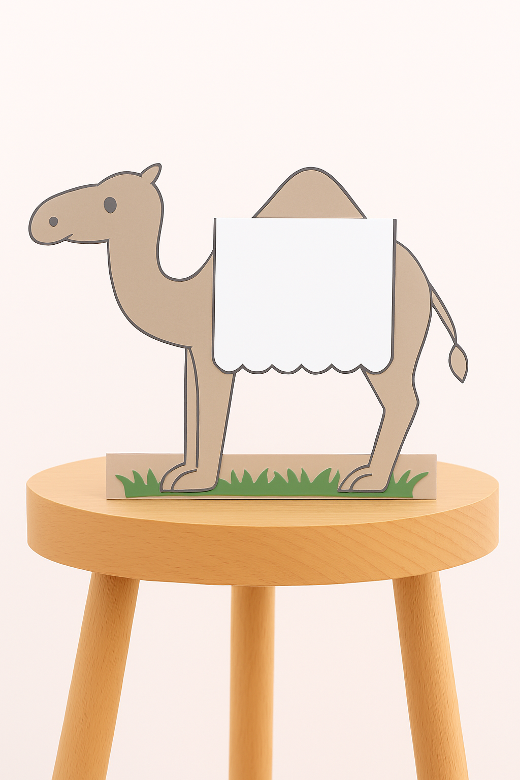 Print or draw a camel standing on a rectangle that extends across the bottom. After cutting out the camel and rectangle, fold the camel in a way that turns the rectangle into the ground behind the camel. (Download Template: 01-06-Camel (0 downloads ) )
