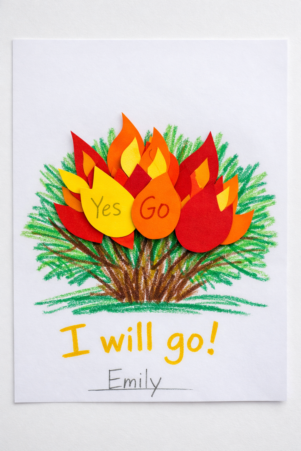 • At the bottom, help them write: “God said, Go!” (Exodus 3:10).